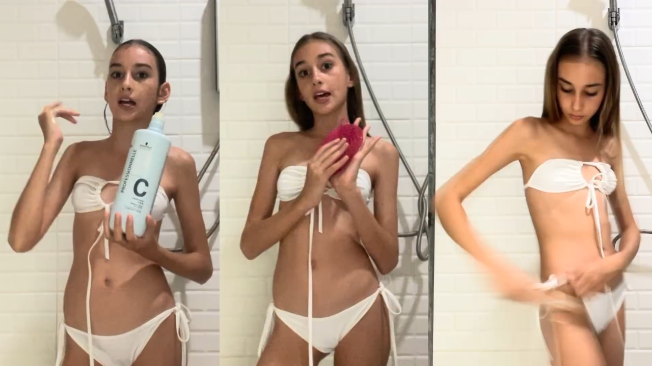 Beautiful teen shows how to do bath routine