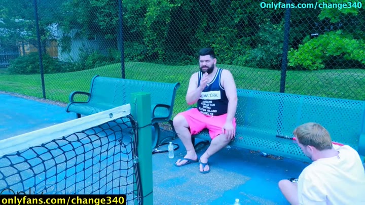 Big Grindr chub fucked by tattooed guy outside on Golf Cart