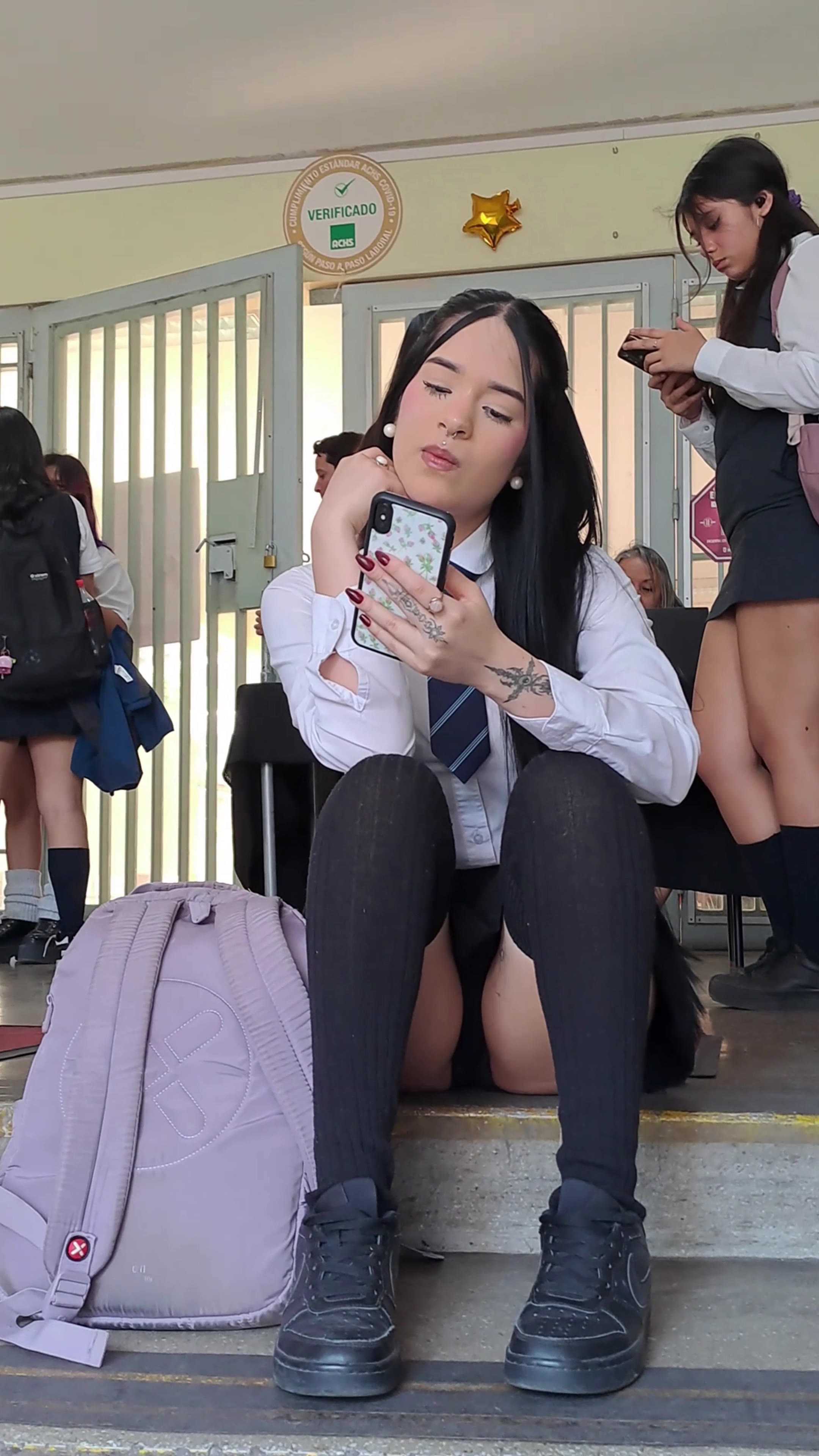 Follow a rockstar schoolgirl to see the squatting
