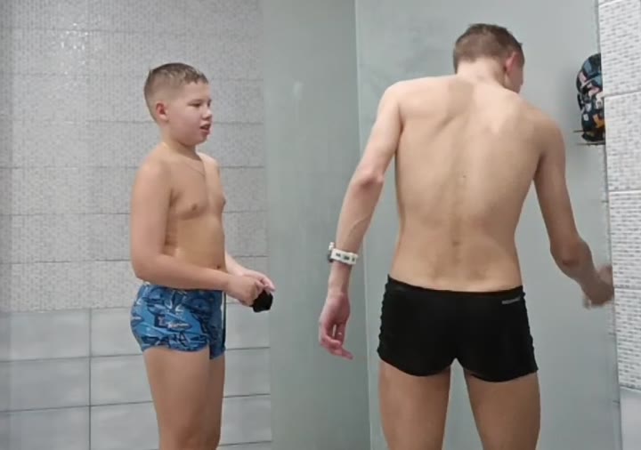 3boys in the pool shower