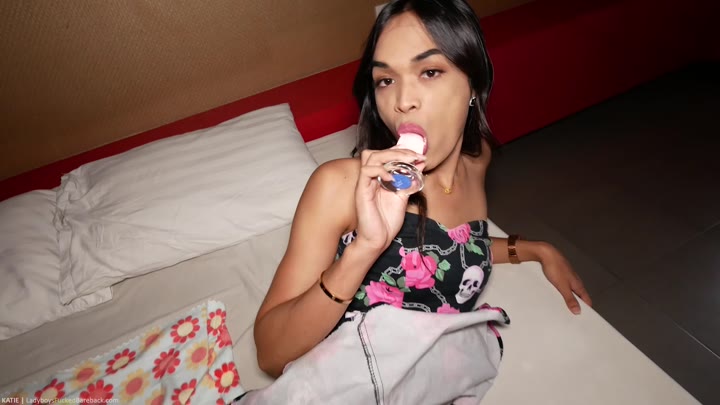 LadyboysFuckedBareback Katie A2M Girlfriend Dress Cum On Cock Bareback